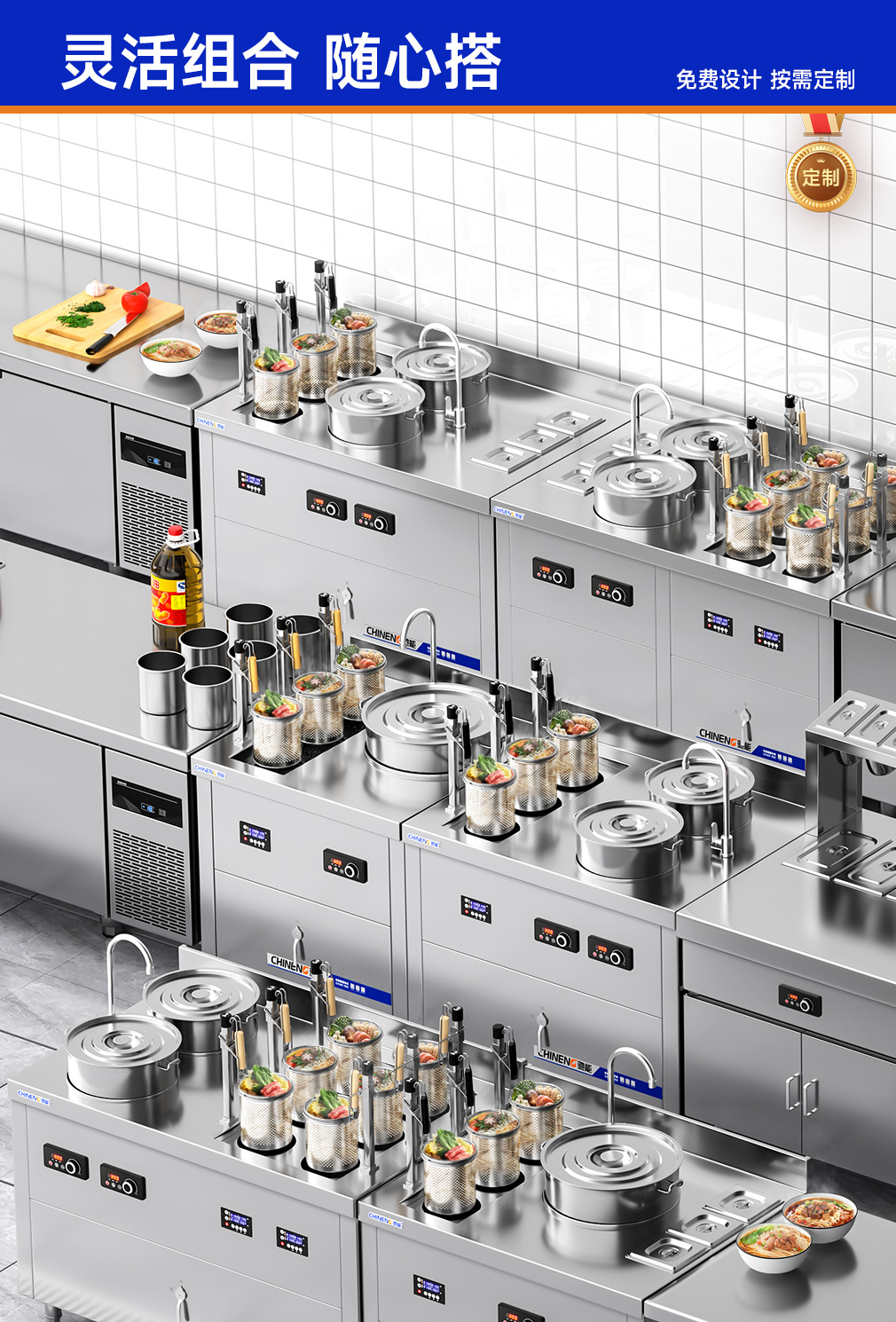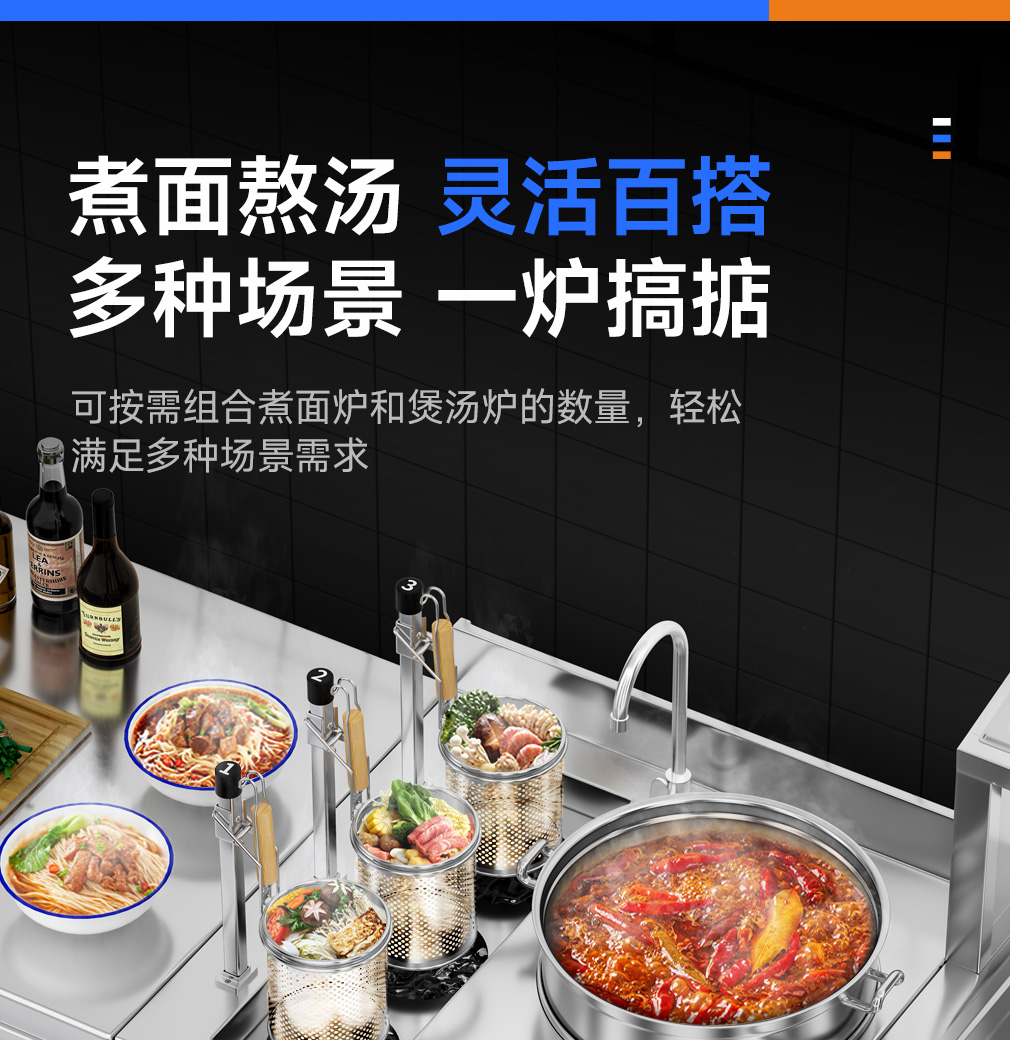 3頭煮面爐+Φ40CM單頭湯爐+3格調料臺